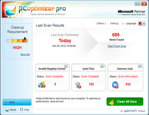 The Graphical User Interface of PC Optimizer Pro has been designed with a specific focus over newbie users who don’t understand much of the technical and high-sounding complex terminologies. Once you have installed and launched PC Optimizer Pro, you will see the main window that has all the tasks you can perform compacted to one area. This makes it simple to choose and start tasks.